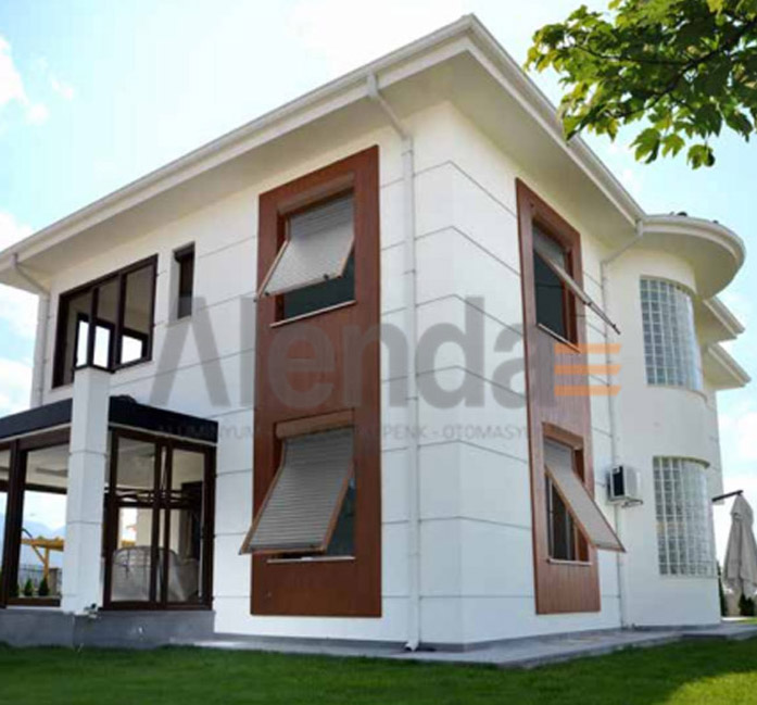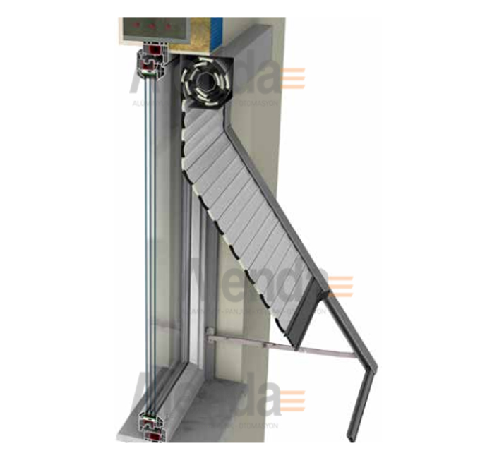 Makaslı açılım seçeneğinde panjur öne doğru yaklaşık 30 derecelik bir açı ile açılım sağlar. Konumu sağlayan menteşeler dikme içerisine gizlenmiş durumdadır.Konumun korunması dikme yanlarında yer alan alüminyum makas aksesuarları ile sağlanır.